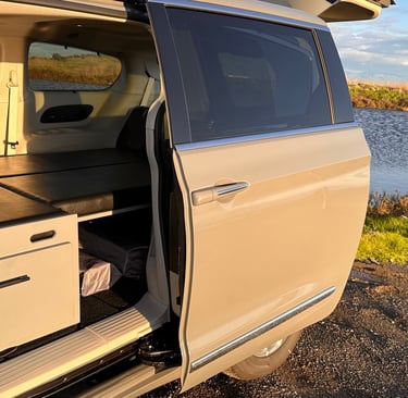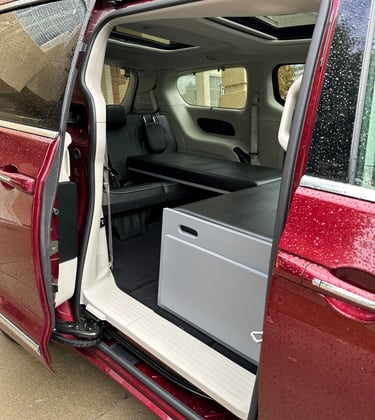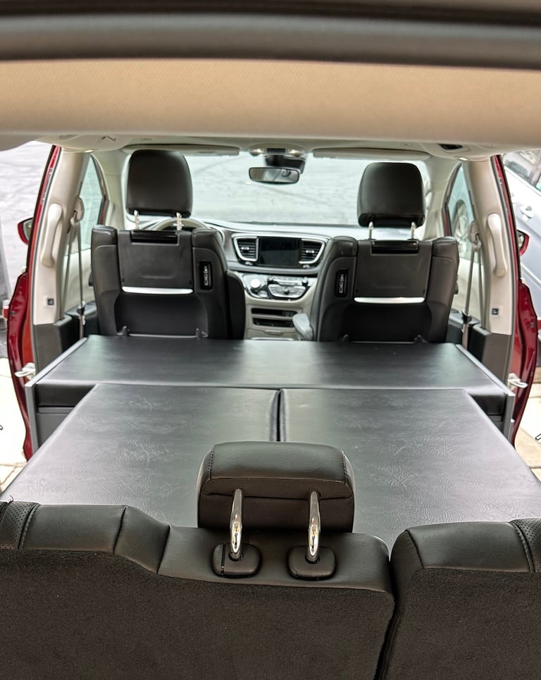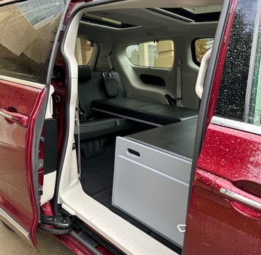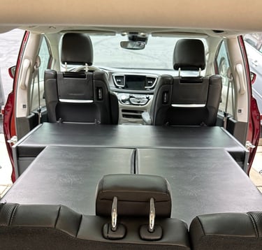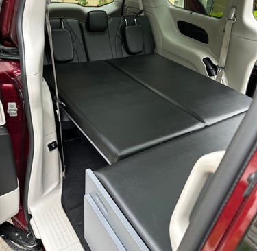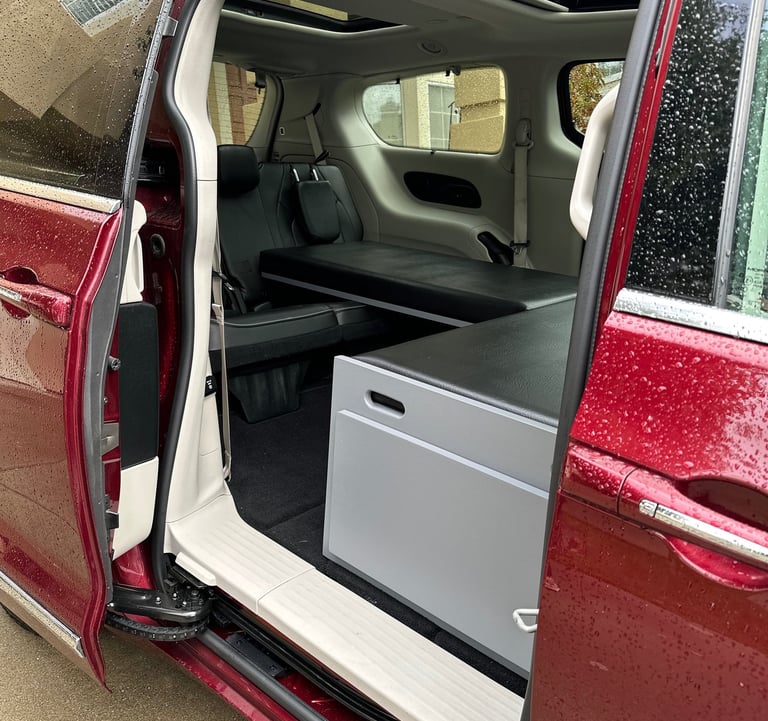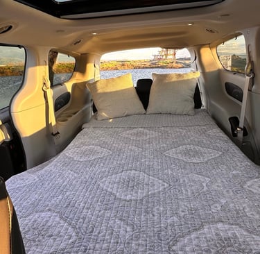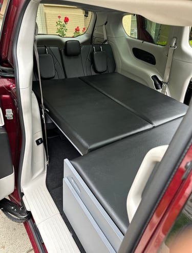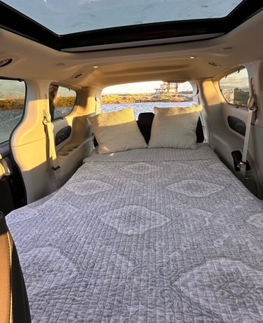 Embark on a mobile retreat! Elevate your minivan into a luxurious haven with BedInAVan. Featuring a sleek bench seat, this patent-pending innovation effortlessly unfolds into a comfortable full bed.